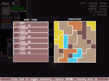 A cozy incremental mining game about digging deeper, collecting oddly shaped ores, and packing them perfectly into your backpack to maximize profit. Sell your haul to upgrade tools, expand your inventory, and unlock new abilities. Can you find the famed Prismatic ore?